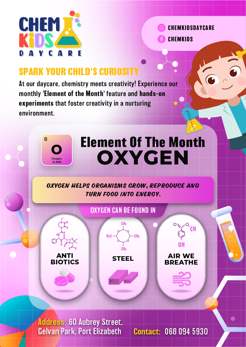 We believe in fostering a deep understanding of the world around us. That’s why we introduced the Element of the Month, a captivating theme that runs throughout each month. Through this focused exploration, children become familiar with the elements present in everyday objects and materials. We incorporate the Element of the Month into various activities, experiments, and discussions, allowing children to develop a strong connection to their environment and expand their scientific knowledge. Join us as we unravel the secrets of the periodic table and ignite a lifelong love for science and chemistry.